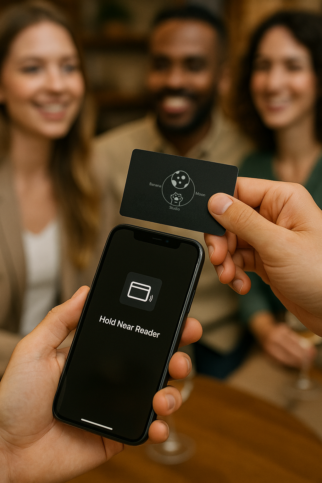 NFC technology is already part of everyday life — enabling tap payments, transit access, and digital keys. At Banana Moon Studio, NFC is offered as a way to enhance physical products with simple, purposeful digital connections — creating objects that inform, communicate, or represent a brand or individual in a meaningful way.